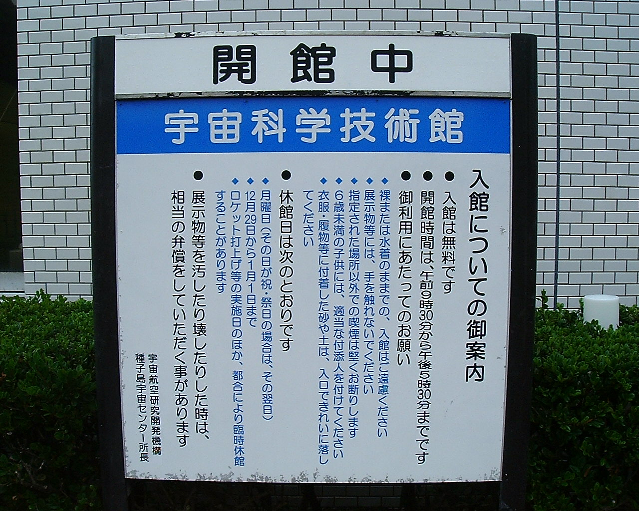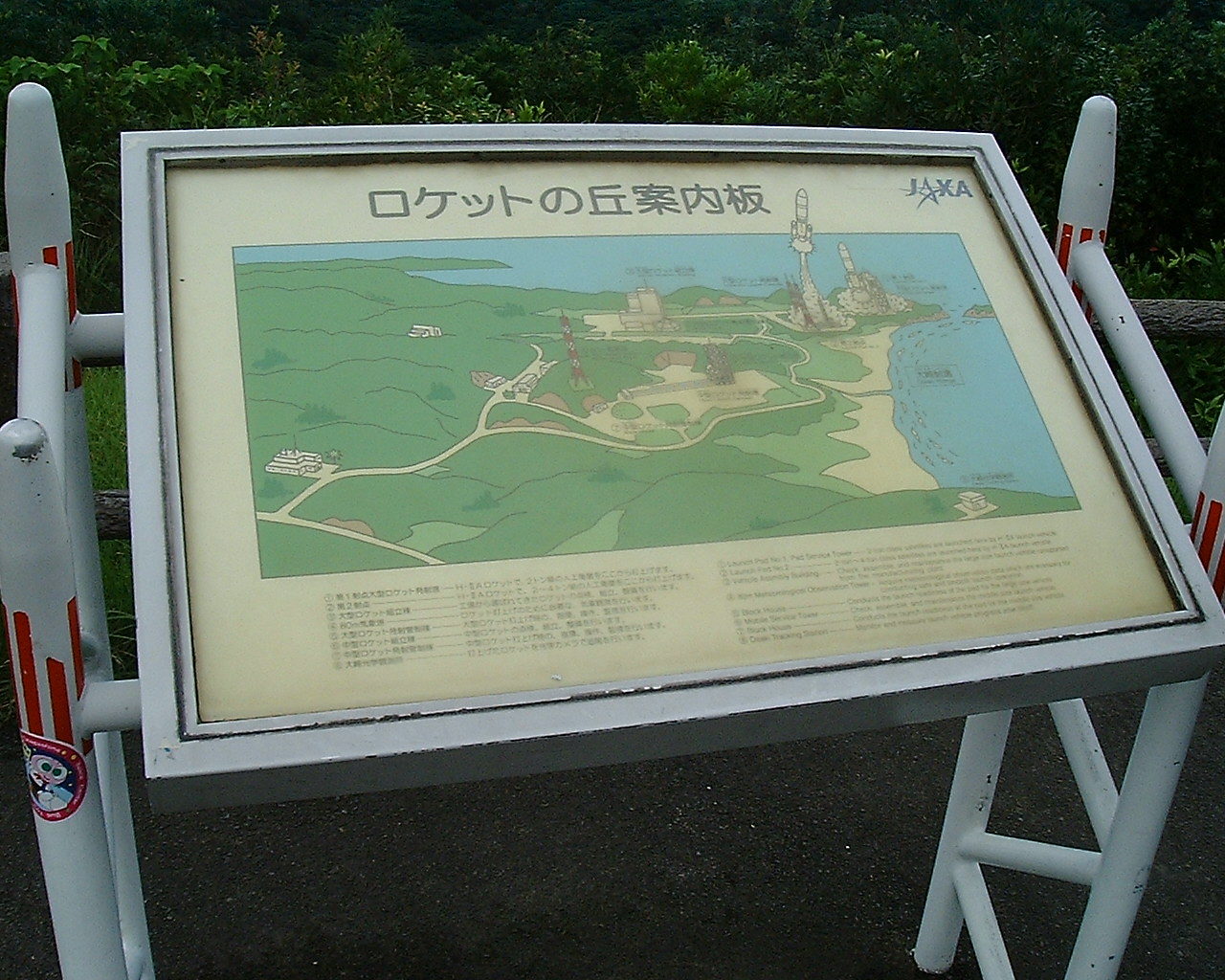 ↑支柱に張ってあるシールは、宇宙センターの施設見学ツアー時にもらえる記念シールです。誰だこんなことするのは!もったいない。