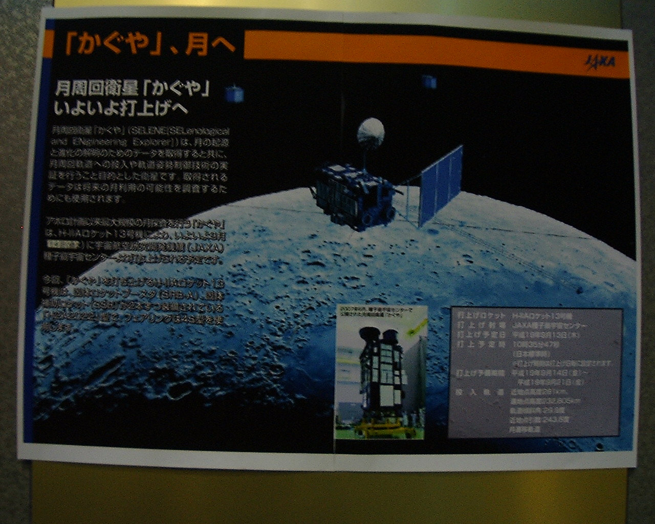 今回のH-IIA13号機で打ち上げる「かぐや」の事も説明してありました。